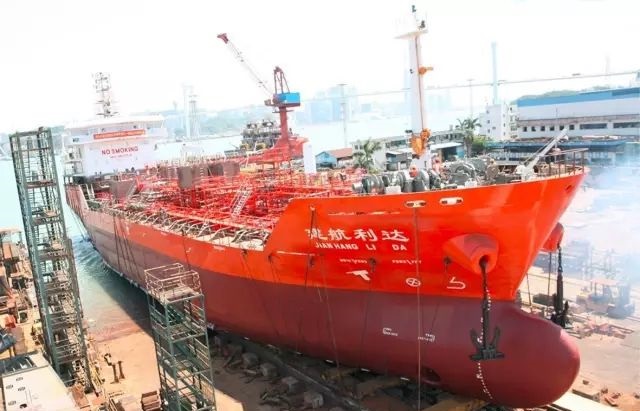 廈船重工首制5390DWT雙相不銹鋼油化一體船下水